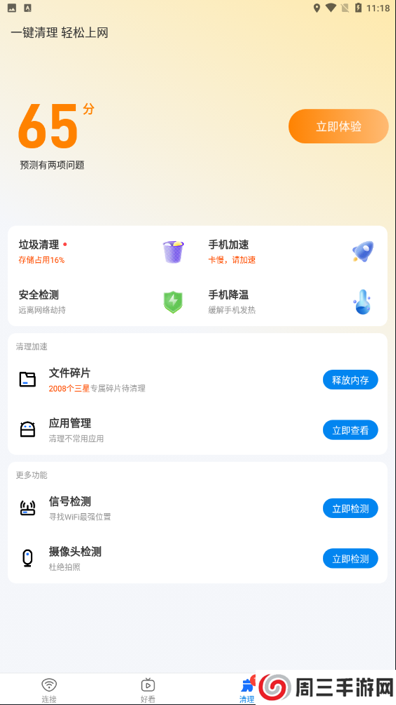 4、不仅如此,点击app功能的清理,还可以为手机*清理或者手机加速等