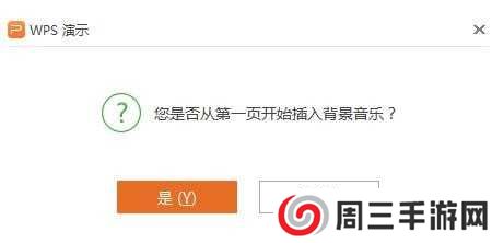 如果当前不是第一张幻灯片,且当前页前无背景音乐,则打开提示“您是否从第一页开始插入背景音乐?”选择“是”则添加到首页,选择“否”,则添加到当前页。