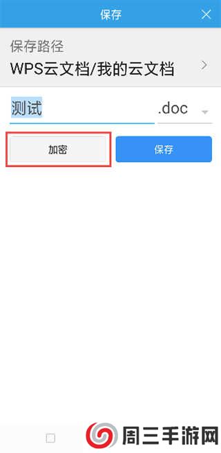 1、新建文档在保存时,界面中有「加密」选项,点击即可进行加密设置。