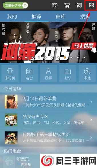 酷我原创电台目前已经合入到酷我有声专区里,进入推荐页,点击今日精华--酷我有声专区--热门栏目--酷我原创电台即可。或者在推荐页中点击焦点图上的酷我音乐调频也可以进入。