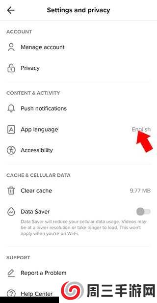 Profile (我的)-设置-App Language (应用语言)-中文简体