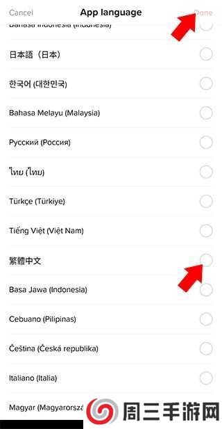 4、在打开的语言选择界面将语言切换为繁体中文,之后点击右上角Done选项即可。