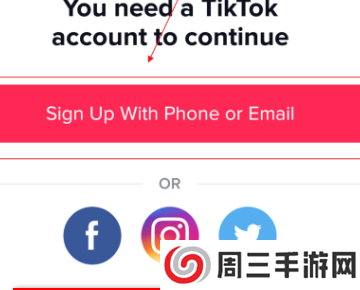 1、首先打开baitiktok,接着在打开的页面中,点击“Sign Up With Phone Or Email”。