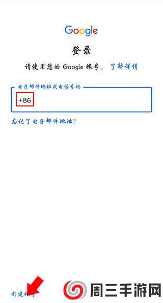 3、之后点击下方打开google play商店,没有账号的话点击左下方创建账号,完成注册操作后登录(中国内地号码注册登录时前方均需添加+86)