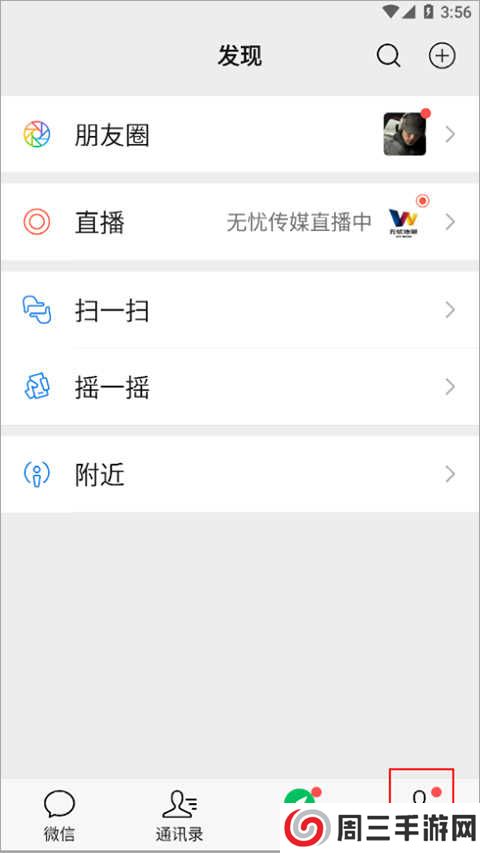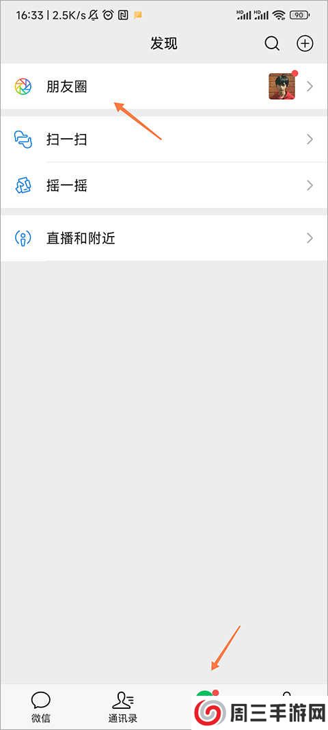 打开手机,点击微信图标,运行微信以后,在主界面底部找到并点击发现,在弹出的界面上方找到朋友圈,如下图: