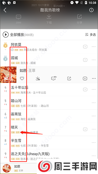 2、那么相信大家都十分好奇该软件都免费到哪里吧?首先随便点击一个排行榜可以看到所有歌下面都显示了“无损”“会员”的字样