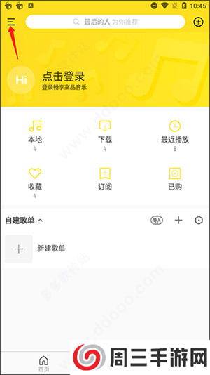1、打开进入到酷我音乐,在酷我音乐推荐界面中点击左上角的【三】按钮。