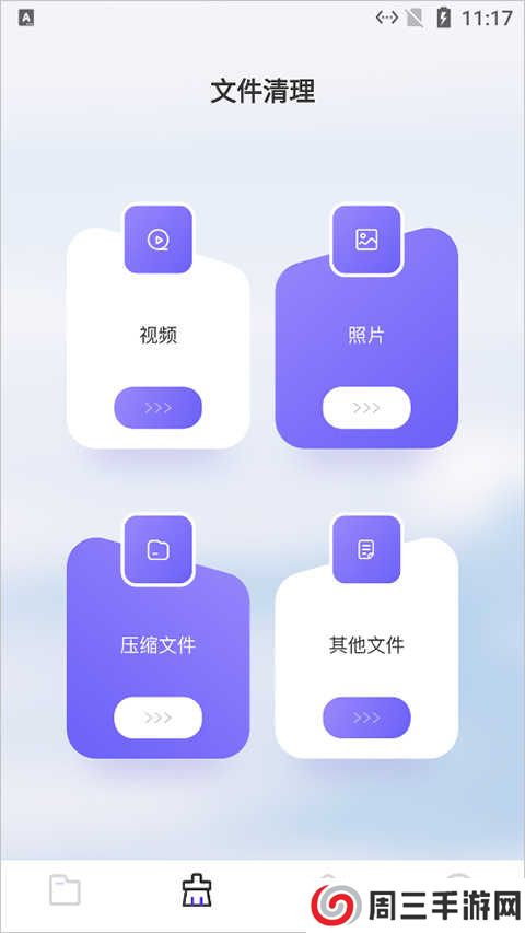 5、文件清理页面中可以对手机中的视频、图片、压缩文件,以及其它文件进行一键批量清理