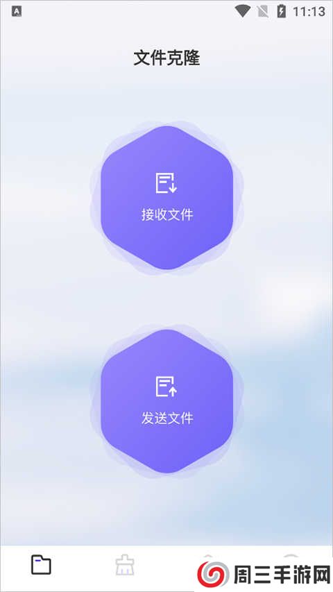 1、用户打开应用后就进入到文件克隆页面中,该页面支持用户发送或接收文件,例如接收文件时只需点击【接收文件】