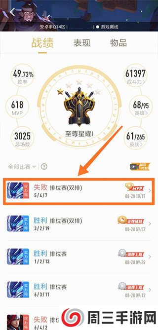 3、找到要查看战绩的好友,此处以箭头处好友为例;
