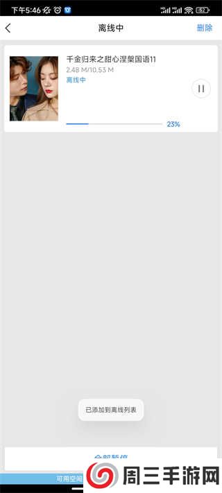 5、选择完成后即可开始缓存了,我们再点击选集正上方的查看离线缓存按钮,便可以看到我们刚才选择的剧集已经开始缓存了。