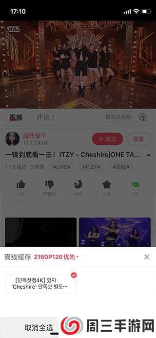4.在屏幕下方就会出现选择栏,选择【缓存】即可