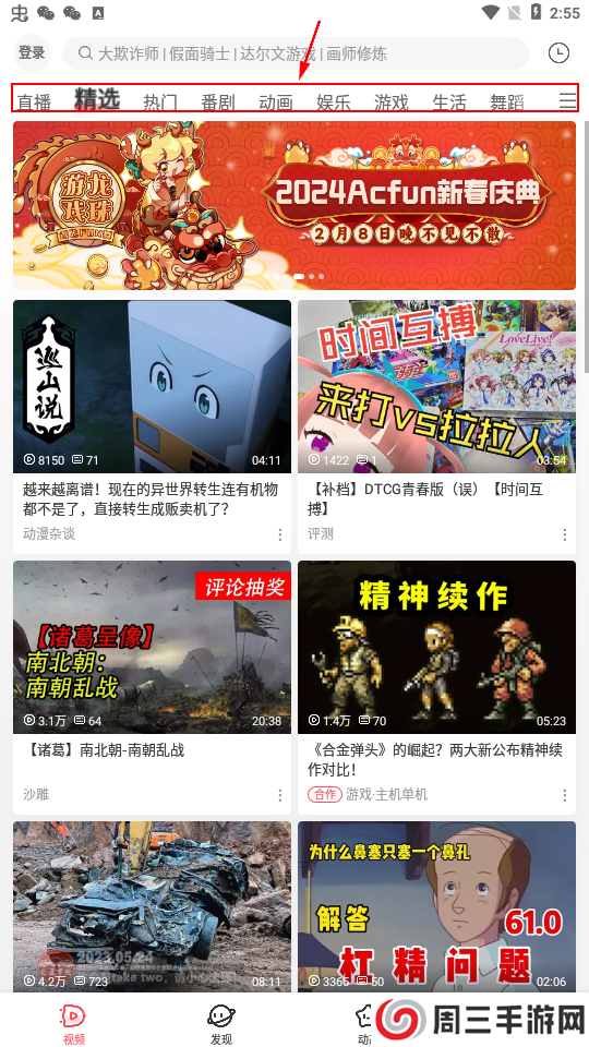打开acfun并在acfun的首页上点击视频的封面进入页面