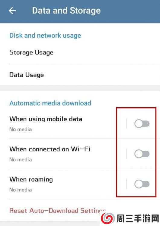 3、在Automatic Media Download的栏目,关闭所有自动下载。