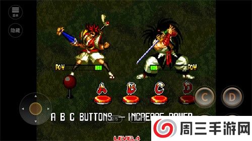2. 操作方式:游戏左下角设有摇杆控制人物动作,右下角有4个按键分别控制拳、脚、放宝物和暴气。简洁的按键操作让玩家能够轻松上手,并体验到格斗的乐趣。