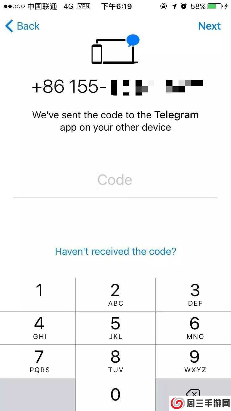 3、安装完telegram,打开,选择国别,输入电话号码,点击右上角“Next”4、输入收到的验证码,自动进入软件