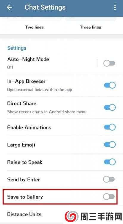 5、退出后再进入Chat Settings,在Save to Gallery的栏目点击取消。