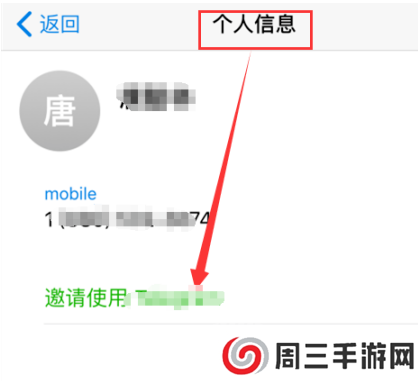 3. 或者在联系人面板下找到自己的朋友【个人信息】,点击底部的【邀请使用。。。】进行邀请,如下图所示。