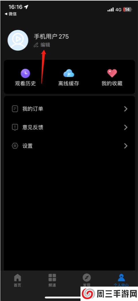 1、首先打开手机上的影视大全,点击图示中的编辑。
