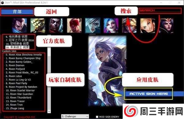 登陆游戏大厅然后启动程序选中皮肤,在右侧找到 【ACTIVE SKIN HERE】