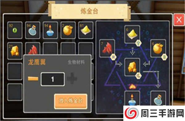点击炼金台打开冶炼面板,可冶炼的材料都会显示在物品栏里哦点击物品选择【放入炼金台】就可以啦!