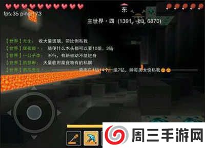 3、直到找到一个地下熔岩池(而不是表面的熔岩池,容易和在海平面生成的混淆),这表明你在正确的深度寻找钻石。