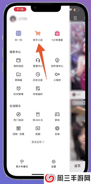 2、点击快手小店
