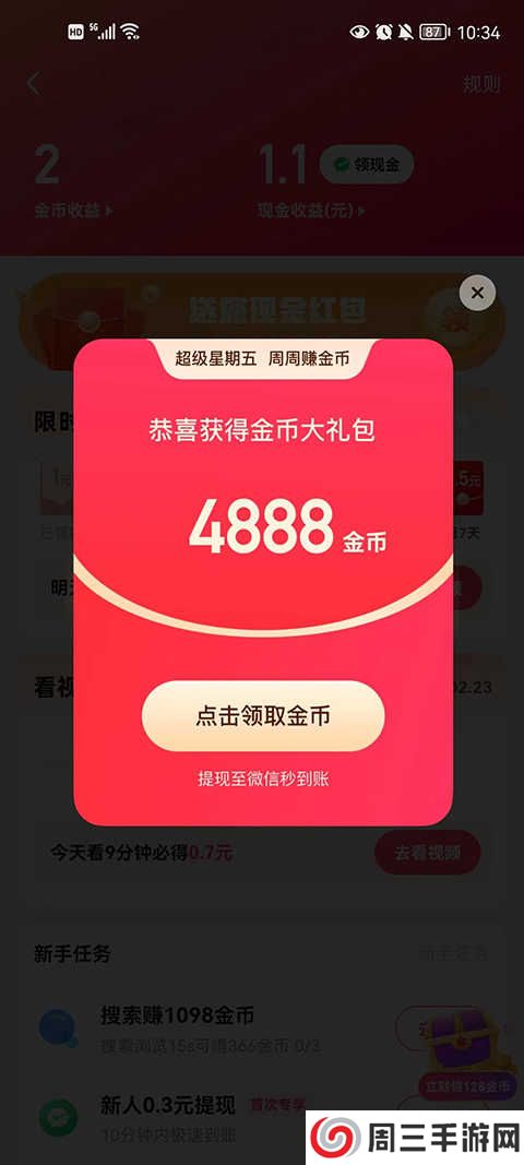 5、用户在刷视频的时候也能够增长现金的额度。