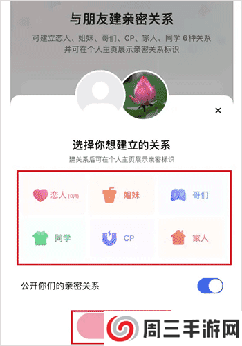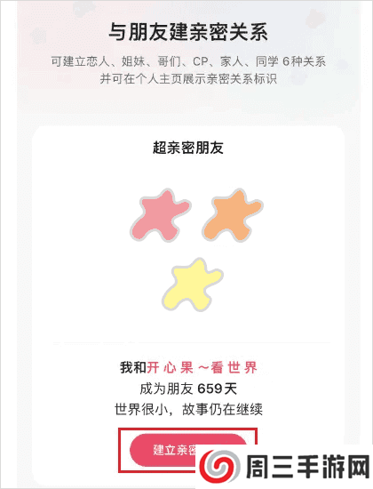 2、在与朋友建亲密关系界面,点击建立亲密关系。