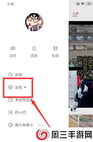 打开快手,点击左上角三条横杆,