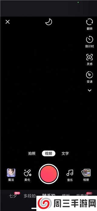 2、登录账号之后,接着点击一下右上角的拍摄图标。