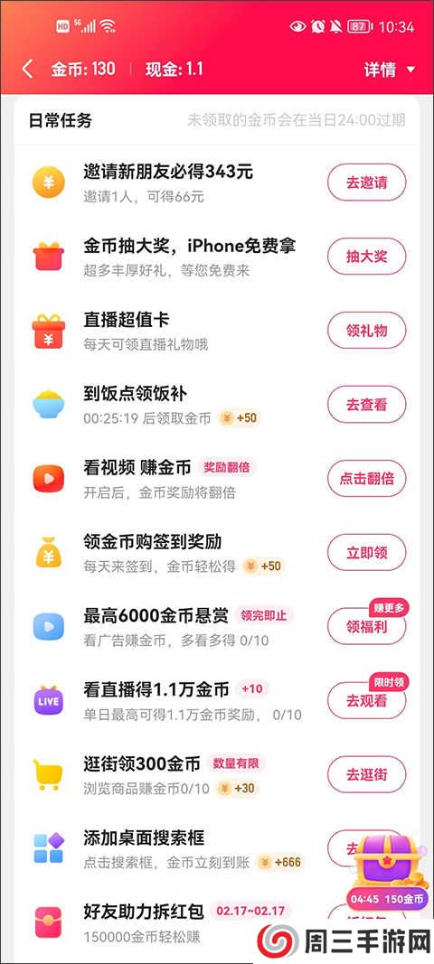4、除了免费红包之外,用户还可以通过日常任务来提升现金奖励。