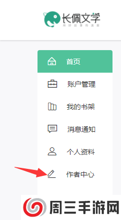 1、首先,进入到长佩文学首页,看到下方有作者中心。