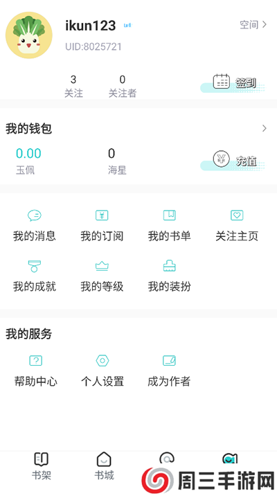 1、您需要进到长佩阅读手机端,在“我的”界面的“我的服务”下方选择“成为作者”。