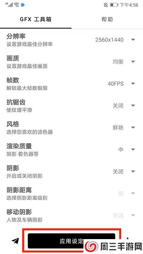 先在工具箱设置好如上面参数时,工具箱应用设定后进入游戏,在游戏设置里手动把工具箱没有改好的设定修改一下,如画质高清改为最流畅。