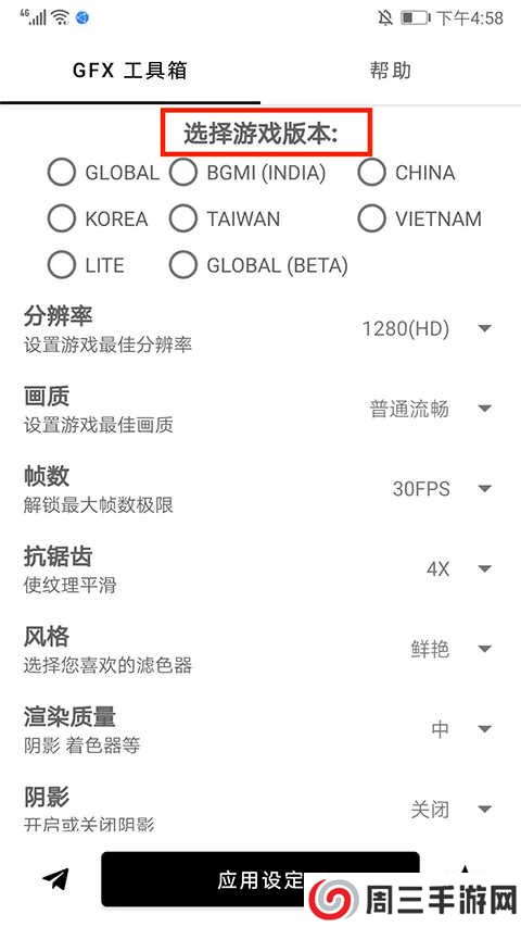 GFX工具箱最新版本120帧(GFX Tool)怎么选择游戏版本?
