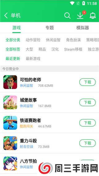 3、点击单机游戏或者网游,你会发现有各种类型的游戏。