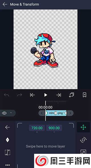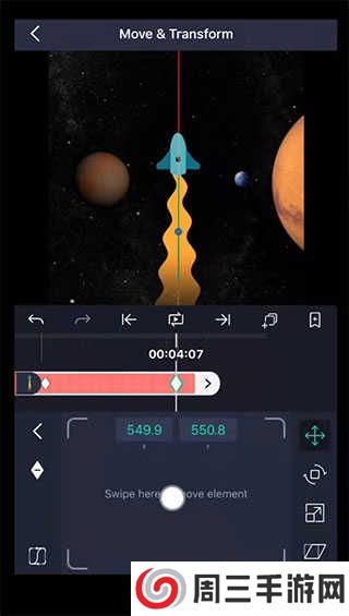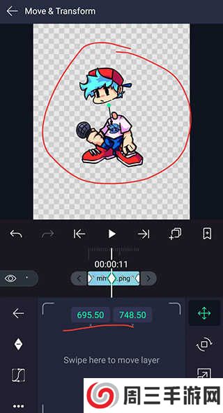 使用编辑面板(如“移动和转换")调整图层位置、颜色和其他属性。