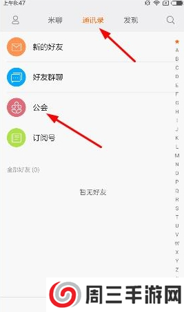 首先在手机上打开米聊,登录之后摸怕在主界面先点击进入【圈子】页面。