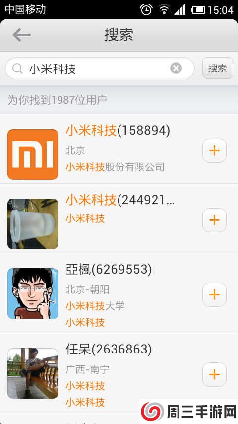 在搜索界面,可以通过搜索对方的姓名、米聊号、学校、公司等来查找好友。
