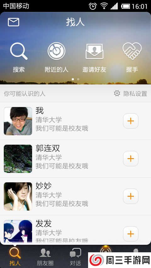 握手可以帮您找到和您同时握手的朋友,并且可以批量添加好友,十分方便快捷。