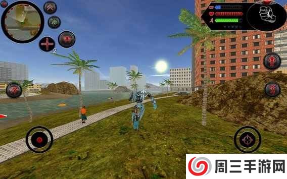 2. 机器人形态:在城市中切换为机器人形态,使用各种高科技武器与技能,消灭邪恶势力并保护市民安全。