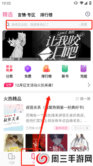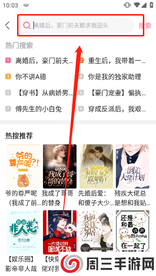 2、点击上方检索栏即可搜索各种关键字,可包含小说名称、作者名称或别称
