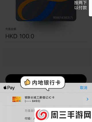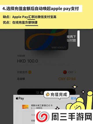 4、选择充值金额后自动唤起apple pay支付缺点:Apple Pay汇率比微信支付宝高