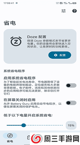 1、通过本站下载Battery Guru电池大师并打开,在首页你可以一键配置省电设置;