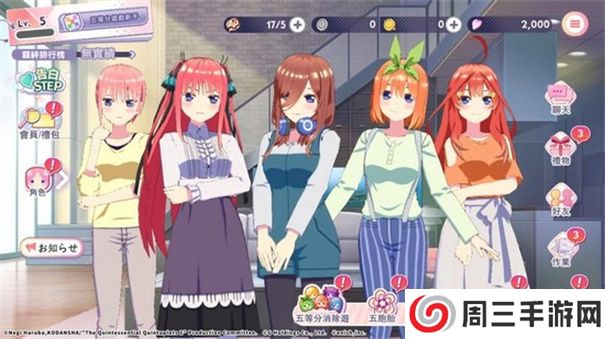 1. 角色选择:玩家将扮演主角上杉风太郎,进入游戏后与五姐妹进行初次见面。