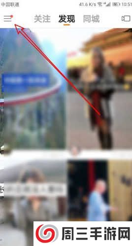 1、进入快手APP后,点击左上角的【三条杠】按钮;