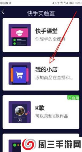 5、这时就会弹出快手实验室的页面,在页面中点击“我的小店”快捷链接。