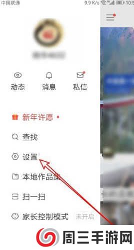 3、这时就会弹出快手的主菜单,在菜单中点击“设置”菜单项。