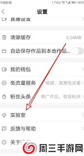 4、接下来在打开的快手设置页面中找到“实验室”的设置项。